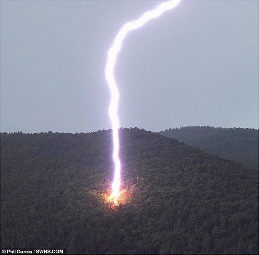 Τότε αποφάσισε να τραβήξει μια φωτογραφία και πέτυχε την κατάλληλη στιγμή. Ο κεραυνός έπεσε σε δέντρο και το έκανε κομμάτια.