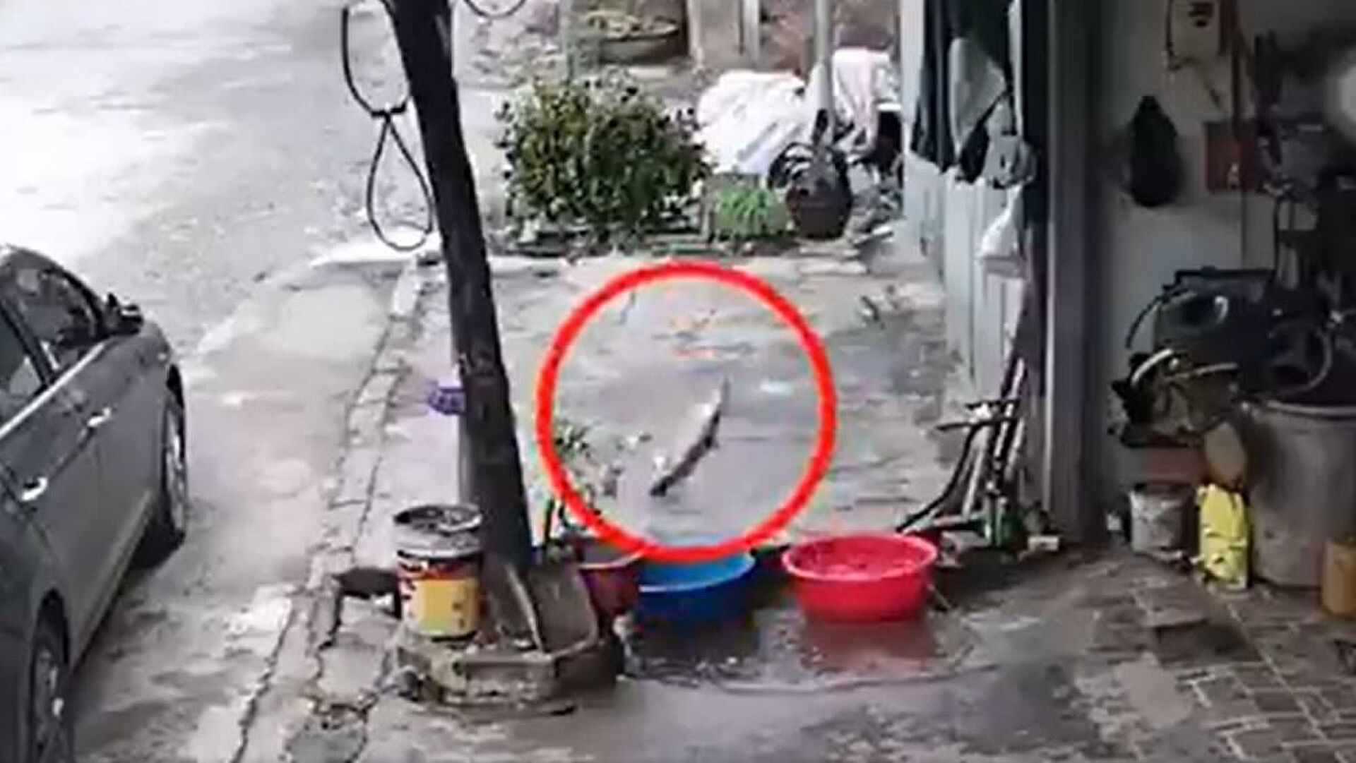Όπως φαίνεται στο viral βίντεο που τράβηξε κάμερα ασφαλείας έξω από σπίτι στο Βιετνάμ, ένα ψάρι δεν έμεινε άπραγο περιμένοντας την τραγική μοίρα του μέσα στη λεκάνη.