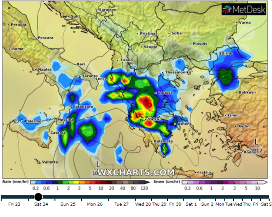 Η πρόσκαιρη επιδείνωση του καιρού προβλέπεται από το Σάββατο (24-04-2021) έως τις πρωινές ώρες της Κυριακής (25-04-2021), με ισχυρές βροχοπτώσεις κατά τόπους στην κεντρική και τη βόρεια χώρα.