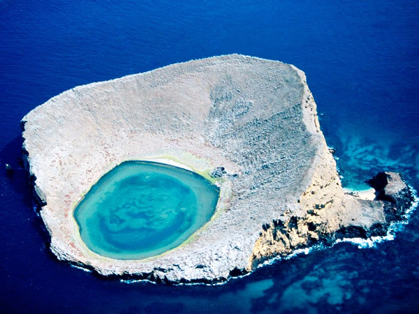 Η «γαλάζια λίμνη» βρίσκεται στο Rocas Baimbridgen των Γκαλαπάγκος, ένα μικρό και «ολόγυμνο» βραχώδες νησί μέσα στη θάλασσα, δημιουργώντας ένα μοναδικό τοπίο.