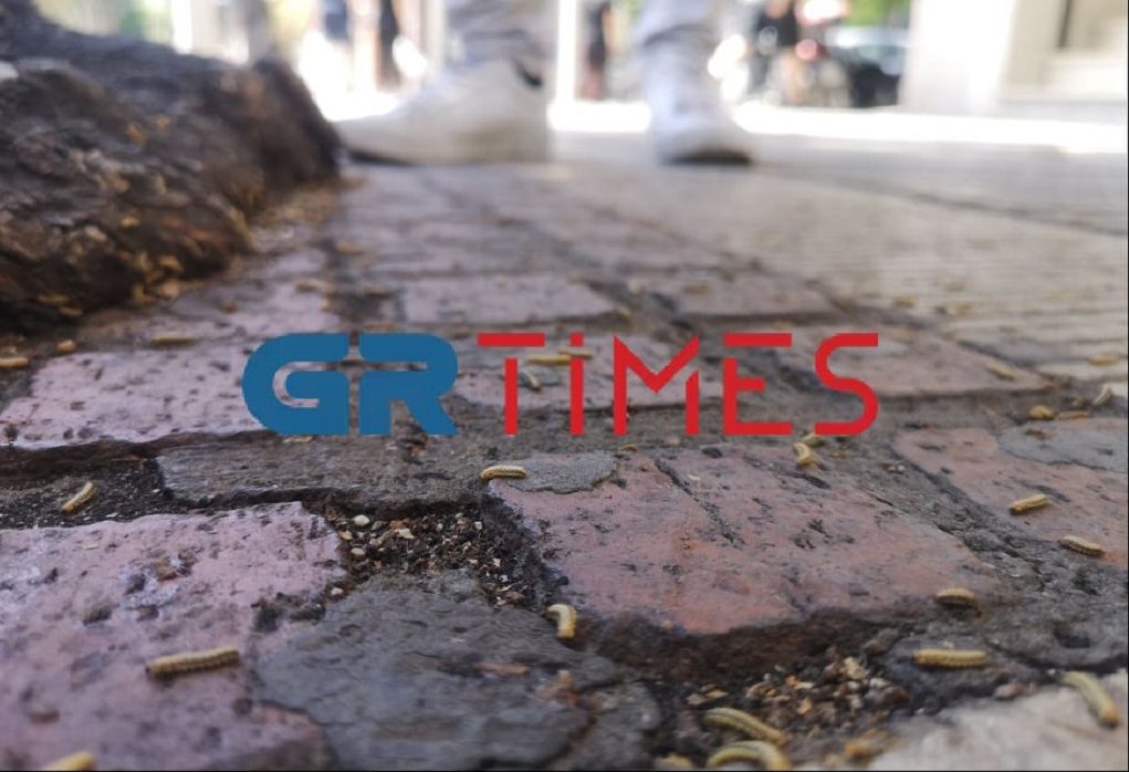 Θεσσαλονίκη: Αμέτρητες κάμπιες στην οδό Τσιμισκή (Βίντεο – φώτο)