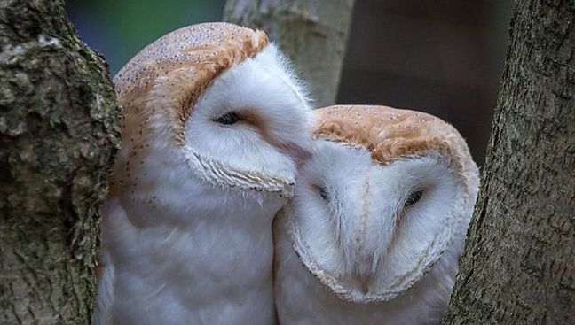 Τρυφερές στιγμές ανάμεσα σε δύο κουκουβάγιες κατέγραψε ο φωτογραφικός φακός σε δάσος του Warwickshire, στη Βρετανία. Τα δυο πουλιά κάθονταν το ένα δίπλα στο άλλο και έκαναν σαν να φιλιούνται πριν πετάξουν μαζί.