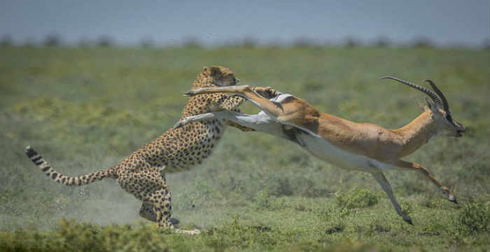 Στο «παιχνίδι» μπαίνει σύντομα μια ύαινα, που διεκδικεί μερίδιο από την «τροφή», αναγκάζοντας το τσιταχ να οπισθοχωρήσει. Κι εκεί που η ύαινα, όπως όλα δείχνουν, ετοιμάζεται να απολαύσει το… δείπνο της, το τσιτάχ επιστρέφει μη θέλοντας να εγκαταλείψει το δικό του «λάφυρο»!