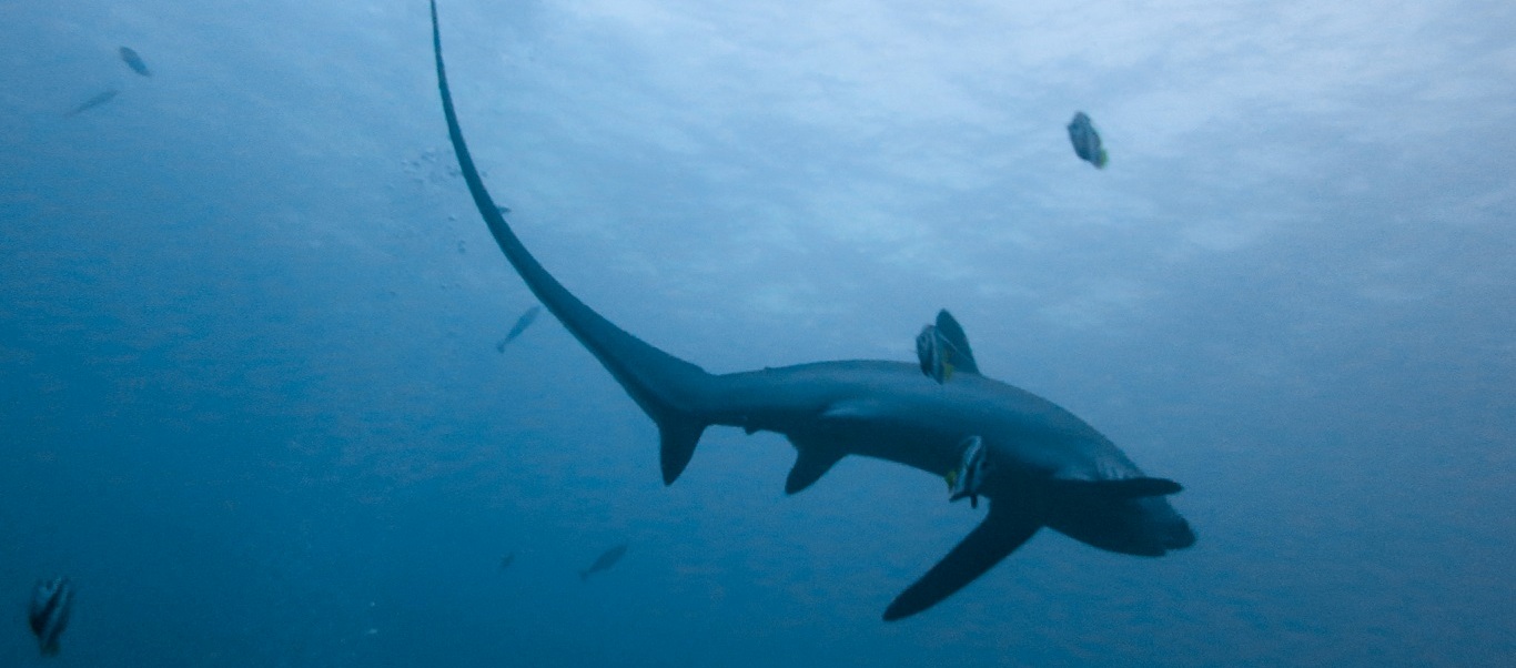 Στα νερά των Μαλδιβών, σε βάθος περίπου τριάντα μέτρων από την επιφάνεια της θάλασσας έφθασε ένας δύτης για να εντοπίσει έναν σπάνιο αλεποκαρχαρία.