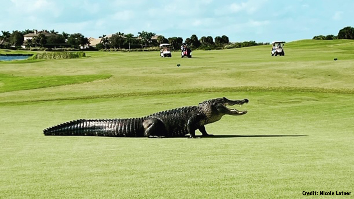 O παρακάτω κροκόδειλος αποφάσισε να ξεκουραστεί σε ένα γήπεδο γκολφ στη Φλόριντα, όμως ο ύπνος του διακόπηκε από ένα μπαλάκι του γκολφ.