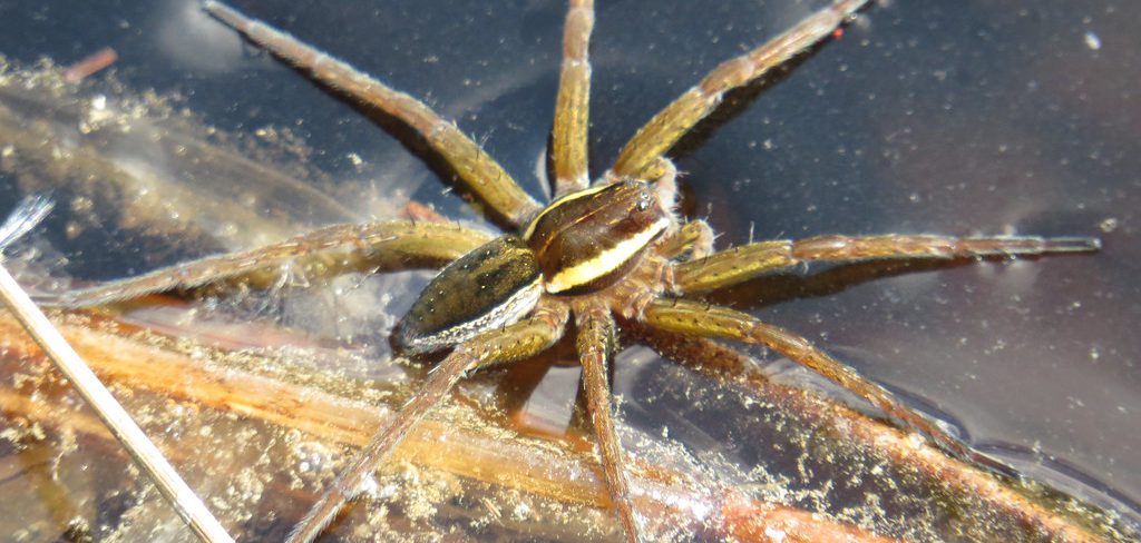 Η «Dolomedes plantarius» ξεχωρίζει για το καφέ σώμα της με τις χαρακτηριστικές ρίγες στα πλαϊνά της.