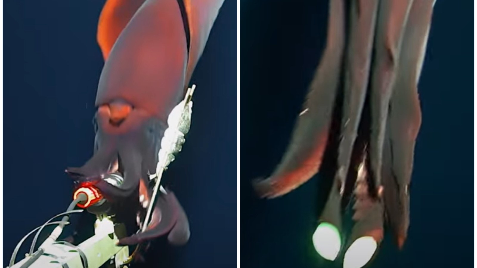 Πλάνα ενός τρομακτικού και απόλυτα σπάνιου καλαμαριού να προσκολλάται σε μια κάμερα, κατάφεραν να καταγράψουν ερευνητές.