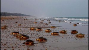 Μια εντυπωσιακή φυσική σκηνή εκτυλίχθηκε στην παραλία Rushikulya, στο κρατίδιο Odisha της Ινδίας, όπου εκατοντάδες χιλιάδες θαλάσσιες χελώνες του είδους Olive Ridley συγκεντρώθηκαν για να γεννήσουν τα αυγά τους.