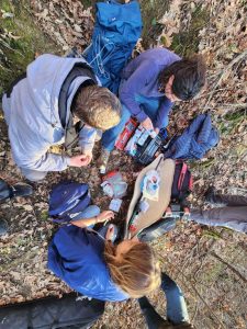 Ακολούθησε η τοποθέτηση ειδικού ραδιοκολλάρου GPS/GSM από τον εκπρόσωπο της ΚΑΛΛΙΣΤ, το οποίο θα προσφέρει χρήσιμα δεδομένα για την κίνηση, οικολογία και βιολογία της αρκούδας στην περιοχή και την ενδεχόμενη αλληλεπίδρασή τους με τον άνθρωπο. Το ραδιοκολλάρο στέλνει την θέση του ζώου κάθε μία ώρα.