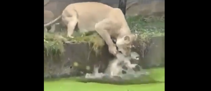 Λιονταρίνα σπρώχνει το μωρό της στο νερό χωρίς να το καταλάβει και έπειτα προσπαθεί απεγνωσμένα να το σώσει.