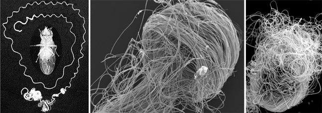 Η κοινή μας μύγα των φρούτων, το μικρό, απλό και ενοχλητικό αυτό έντομο των νοικοκυριών, κρύβει ένα μεγάλο μυστικό, ένα τεράστιο μυστικό για να είμαστε ακριβείς. Κι αυτό γιατί το σπέρμα που παράγει ισοδυναμεί με 20 φορές το μήκος του σώματός της! Η Drosophila bifurga παράγει σπερματοζωάρια που εκτείνονται σε μήκος 5 εκατοστών, με το μέγεθός της να μην ξεπερνά τα 0,25 εκατοστά!