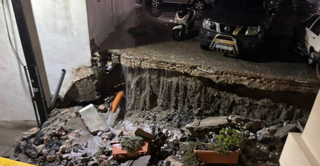 Δημοτικό τοιχίο κατέρρευσε λόγω της διάβρωσης από το νερό και τμήμα του έπεσε πάνω σε παρακείμενη κατοικία, προκαλώντας εκτεταμένες φθορές.
