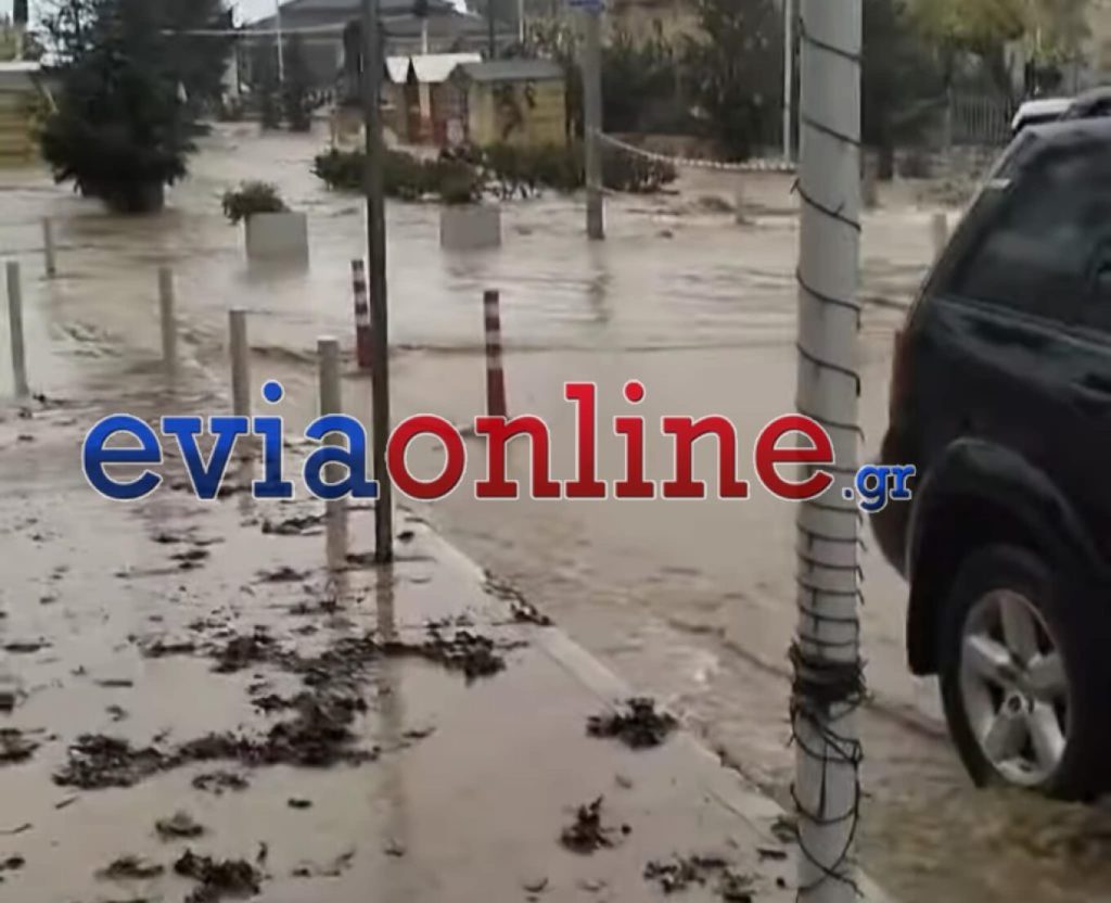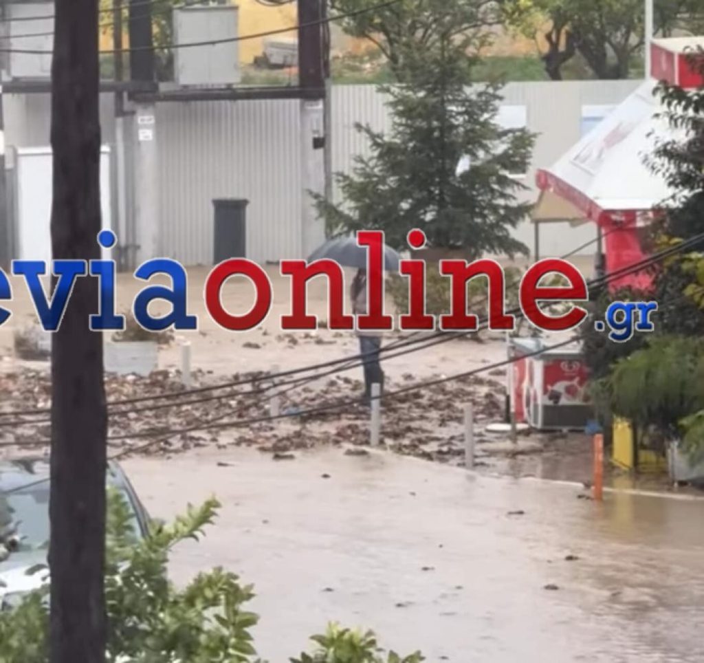 Εύβοια: Συνεχίζονται με αμείωτη ένταση οι βροχοπτώσεις – Σε επιφυλακή οι αρχές μετά την πλημμύρα δρόμων (φωτο)