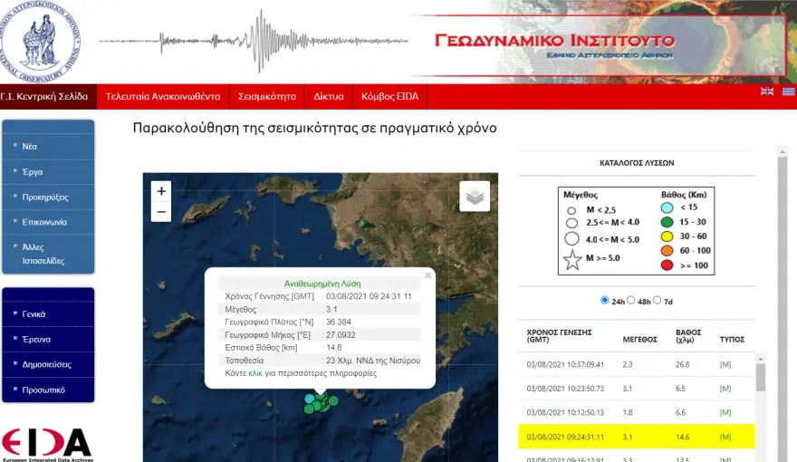 Σεισμική δόνηση μεγέθους 3,1 βαθμών της κλίμακας Ρίχτερ σημειώθηκε το μεσημέρι της Τρίτης, 3 Αυγούστου στη Νίσυρο.