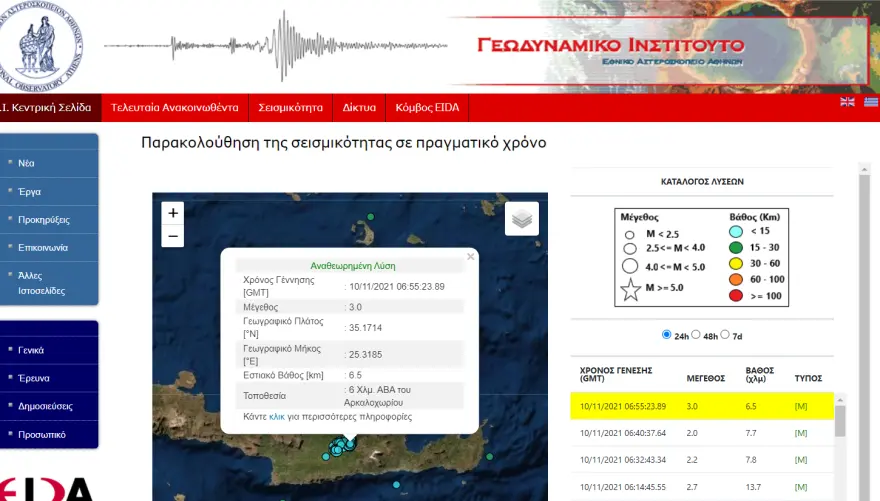 Δείτε πώς κατέγραψε το Γεωδυναμικό Ινστιτούτο του Εθνικού Αστεροσκοπείου Αθηνών τη νέα σεισμική δόνηση: