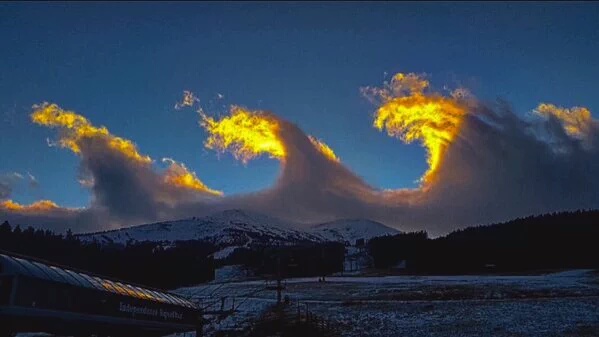 Έναν εντυπωσιακό σχηματισμό νεφών, σαν άγρια κύματα που σκάνε στον… ουρανό, είδαν οι κάτοικοι πριν από μερικές μέρες, τα οποία μάλιστα συμπληρώθηκαν ιδανικά από το πορτοκαλί χρώμα της δύσης του ήλιου.