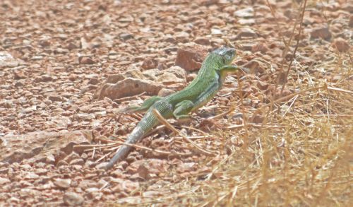 Μία πράσινη αρσενική τρανόσαυρα εντοπίστηκε στο Ναύπλιο την Παρασκευή. Είναι η πιο μεγαλόσωμη σαύρα, με το μήκος σώματος να φτάνει μέχρι τα 50 εκατοστά.