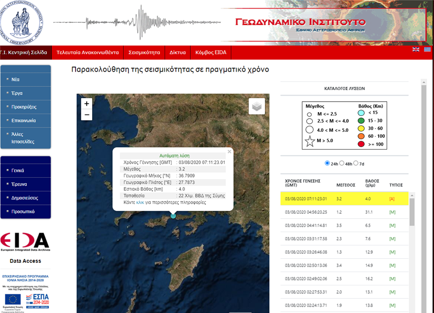 Σεισμός μεγέθους 3,2 βαθμών της Κλίμακας Ρίχτερ σημειώθηκε το πρωί της Δευτέρας 3 Αυγούστου στο Αιγαίο και συγκεκριμένα στη Σύμη.