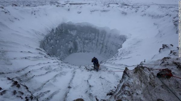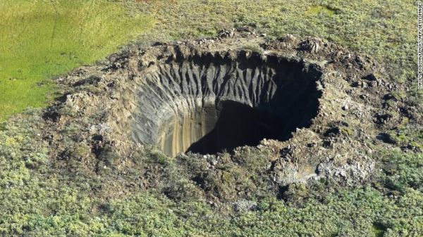 Έναν τεράστιο κρατήρα βάθους 30 και διαμέτρου 20 μέτρων, εντόπισε κατά τη διάρκεια του καλοκαιριού ρωσικό τηλεοπτικό συνεργείο που πετούσε πάνω από την τούνδρα της Σιβηρίας.