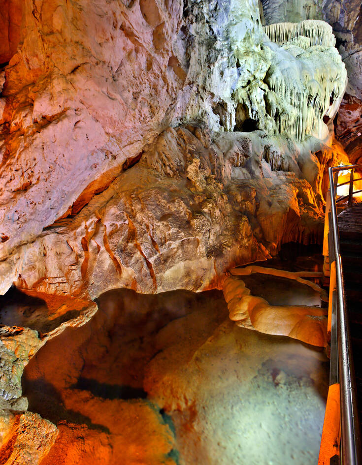 Το αξιοποιημένο μήκος του σπηλαίου ανέρχεται στα 500 μ., ενώ το συνολικό μήκος του είναι 1.980 μ. Ο επισκέπτης μπαίνει σε αυτό από τεχνητή σήραγγα που καταλήγει κατευθείαν στον δεύτερο από τους τρεις συνολικά, ορόφους.