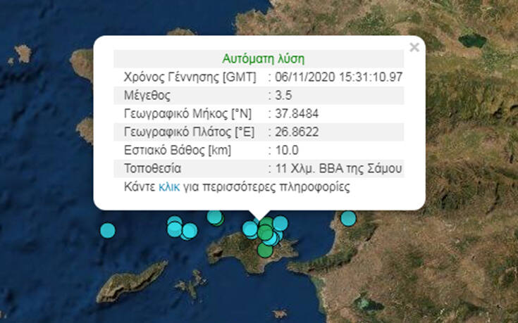 Νέα σεισμική δόνηση στη Σάμο μεγέθους 3,5 Ρίχτερ