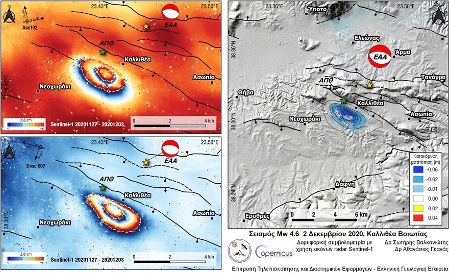«Πρόκειται για έναν ασθενή σεισμό μεγέθους 4,6 βαθμών, όπου δεν αναμενόταν να προκαλέσει μετατόπιση στο έδαφος, εξαιτίας του μικρού εστιακού βάθους που ήταν 2 χιλιόμετρα. Ωστόσο η μετατόπιση αποτυπώθηκε σε δορυφορικές εικόνες και μετά την επεξεργασία τους προέκυψε το αποτέλεσμα του χάρτη. Είναι η πρώτη φορά που καταγράφεται παραμόρφωση εδάφους από σεισμό 4,6 στην Ελλάδα» είπε ο Δρ Αθανάσιος Γκανάς πρόεδρος της ΕΤΔΕ.
