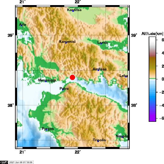 Το ακριβές επίκεντρο τη δόνησης εντοπίζεται στα 21 χλμ. βορειοανατολικά της Πάτρας και 11 χλμ. βορειοδυτικά του Αιγίου.