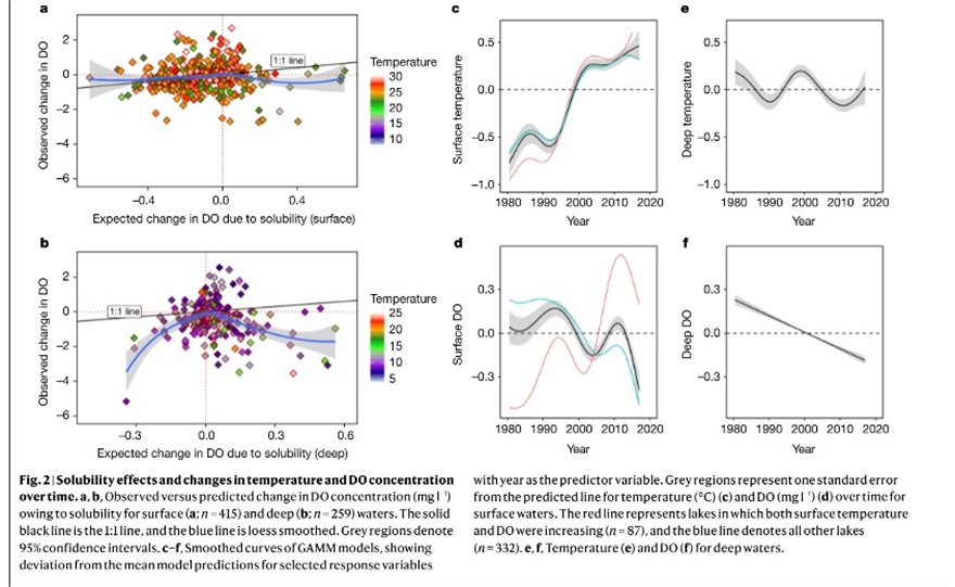 Οι ερευνητές της μελέτης, που δημοσιεύτηκε στο περιοδικό Nature, ανέλυσε 45.000 δείγματα διασκορπισμένου οξυγόνου και θερμοκρασίας που συλλέχθηκαν από 400 λίμνες παγκοσμίως. Για τις περισσότερες λίμνες, τα στοιχεία που εντοπίστηκαν ξεκινούν το 1980, αν και σε μία λίμνη βρέθηκαν στοιχεία από το 1941.
