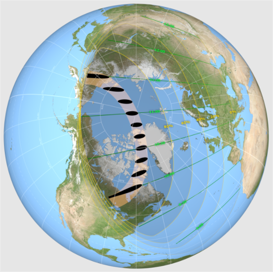 Το «μονοπάτι» πλήρους ορατότητας της έκλειψης θα περιοριστεί στην ανατολική Ρωσία, στον Αρκτικό Ωκεανό, στη δυτική Γροιλανδία και στον Καναδά, ενώ το φαινόμενο θα είναι μερικά ορατό από τις ΗΠΑ και μέρος της Ευρώπης, το οποίο όμως δεν περιλαμβάνει τη χώρα μας.