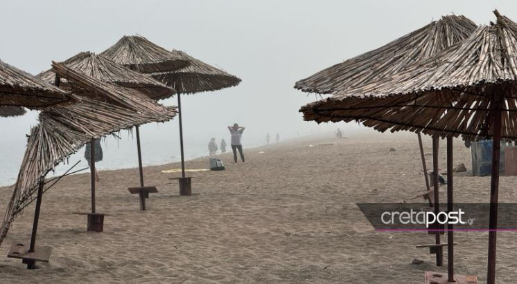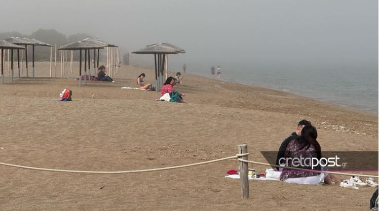 Αποπνικτική είναι η ατμόσφαιρα στην Κρήτη, ενώ από την ομίχλη «κρύφτηκε» μέχρι και ο ήλιος. Ωστόσο, οι παραλίες φιλοξενούν έναν μεγάλο αριθμό λουόμενων, οι οποίοι αναζήτησαν δροσιά και χαλάρωση με την άφιξη των υψηλών θερμοκρασιών για την εποχή.