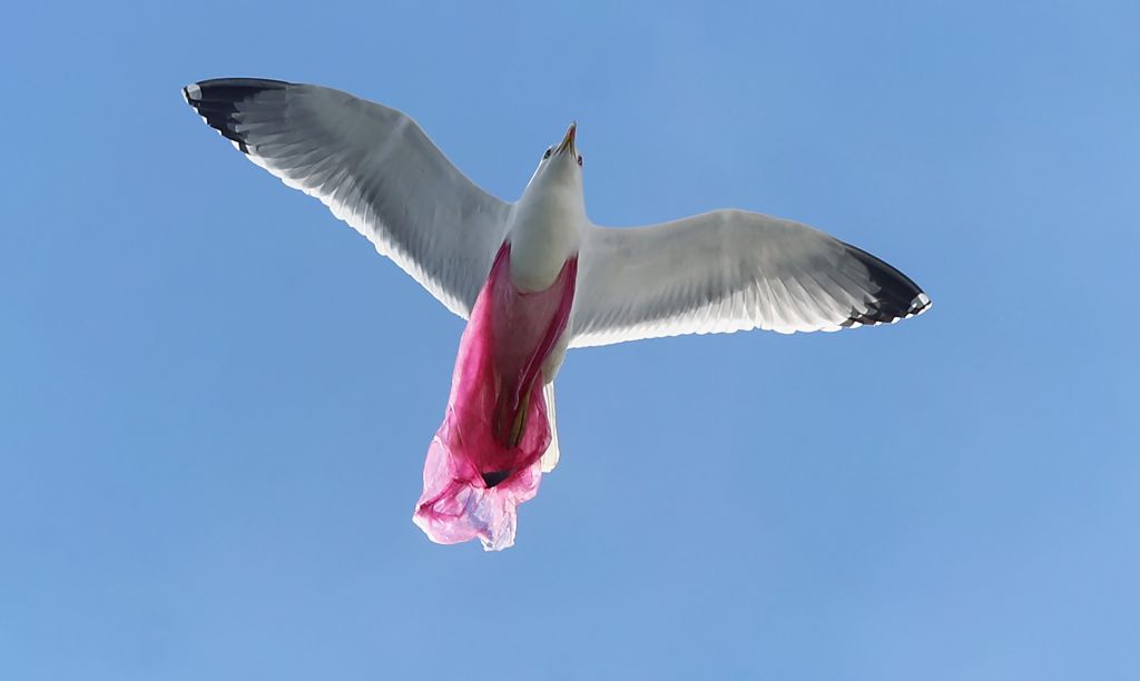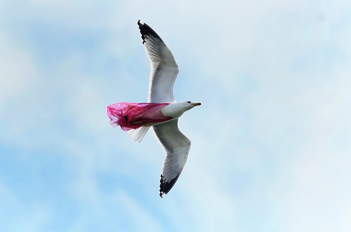 Το γύρο του διαδικτύου κάνει η εικόνα ενός Ασημόγλαρου, ο οποίος εθεάθη να πετάει πάνω από την Αττική, μπλεγμένος σε μία κόκκινη πλαστική σακούλα.