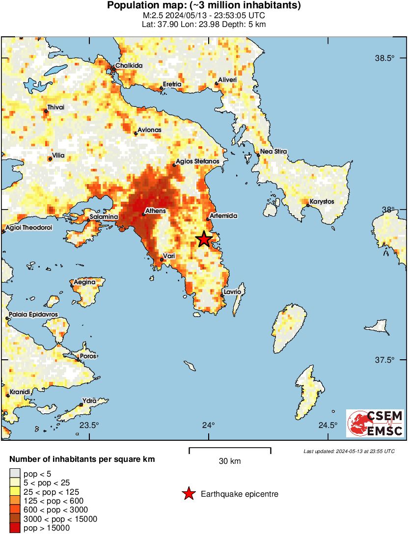Η λύση του Ευρωπαϊκού – Μεσογειακού Σεισμολογικού Ινστιτούτου (EMSC) κατέγραψε από την πλευρά του το σεισμό στα 2,5 Ρίχτερ.