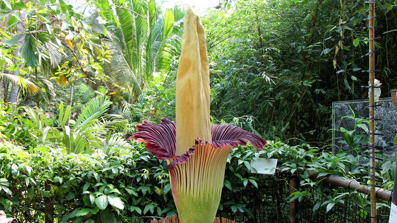«Βρομερός κρίνος» και «μαύρος δράκος» είναι οι βασικές ονομασίες του φυτού που βλέπετε, το λουλούδι του οποίου μυρίζει ψοφίμι. Το ευτύχημα στην περίπτωση αυτή είναι ότι η άνθισή του διαρκεί μόνο μία μέρα. Ανεκτό, λοιπόν.