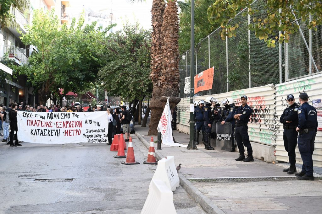 Μηχανήματα του υπουργείου Υποδομών βρίσκονται από νωρίς το πρωί της Δευτέρας (6/11) στην πλατεία Εξαρχείων και κόβουν δέντρα, με αφορμή την εκ νέου έναρξη των έργων για το μετρό της περιοχής.