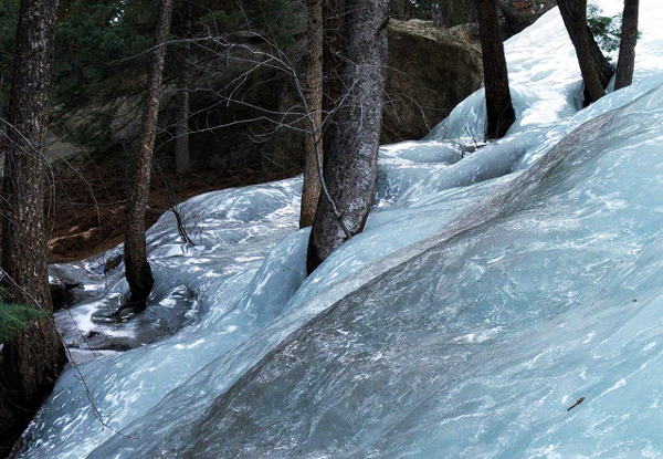 Οι περιπατητές του δάσους βρέθηκαν μπροστά σε ένα σπάνιο θέαμα, καθώς η ανάβαση στις πλαγιές ήταν αδύνατη χωρίς τον κατάλληλο εξοπλισμό των ορειβατών. Έτσι αρκετοί από αυτούς έμειναν να θαυμάζουν τις εικόνες, ενώ οι πιο τολμηροί δοκίμασαν μια extreme διαδρομή ανάμεσα στους πάγους.