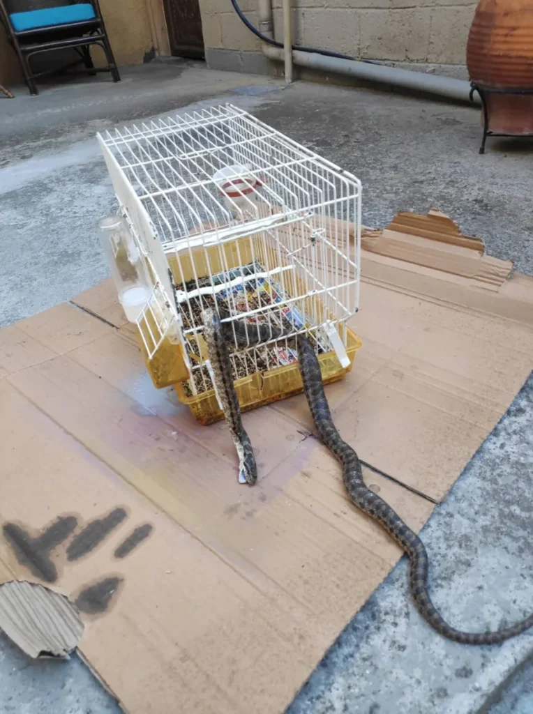 Όπως περιγράφει ο ιδιοκτήτης του σπιτιού στο tinealarissa.gr, «το κλουβί με το καναρίνι το είχαμε κρεμασμένο στον τοίχο του σπιτιού και ξαφνικά είδα το φίδι να έχει τρυπώσει μέσα και να τρώει το καναρίνι μας. Όπως αντιλαμβάνεστε το σοκ ήταν μεγάλο, να μπει φίδι στην αυλή μας και να φάει το καναρίνι; Ευτυχώς που δεν ήταν η γυναίκα μου εκεί γιατί σίγουρα θα λιποθυμούσε από το φόβο της».