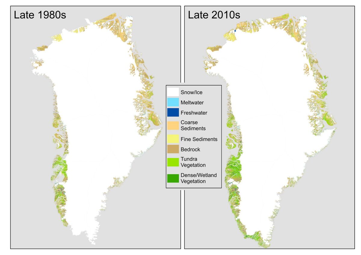 Τις τελευταίες τρεις δεκαετίες, εκτιμάται πως πάνω από 28.700 τετραγωνικά χιλιόμετρα ή το 1,6% του στρώματος πάγου της Γροιλανδίας έχει λιώσει, δίνοντας τη… θέση του σε βράχους, υγροτόπους και θάμνους.