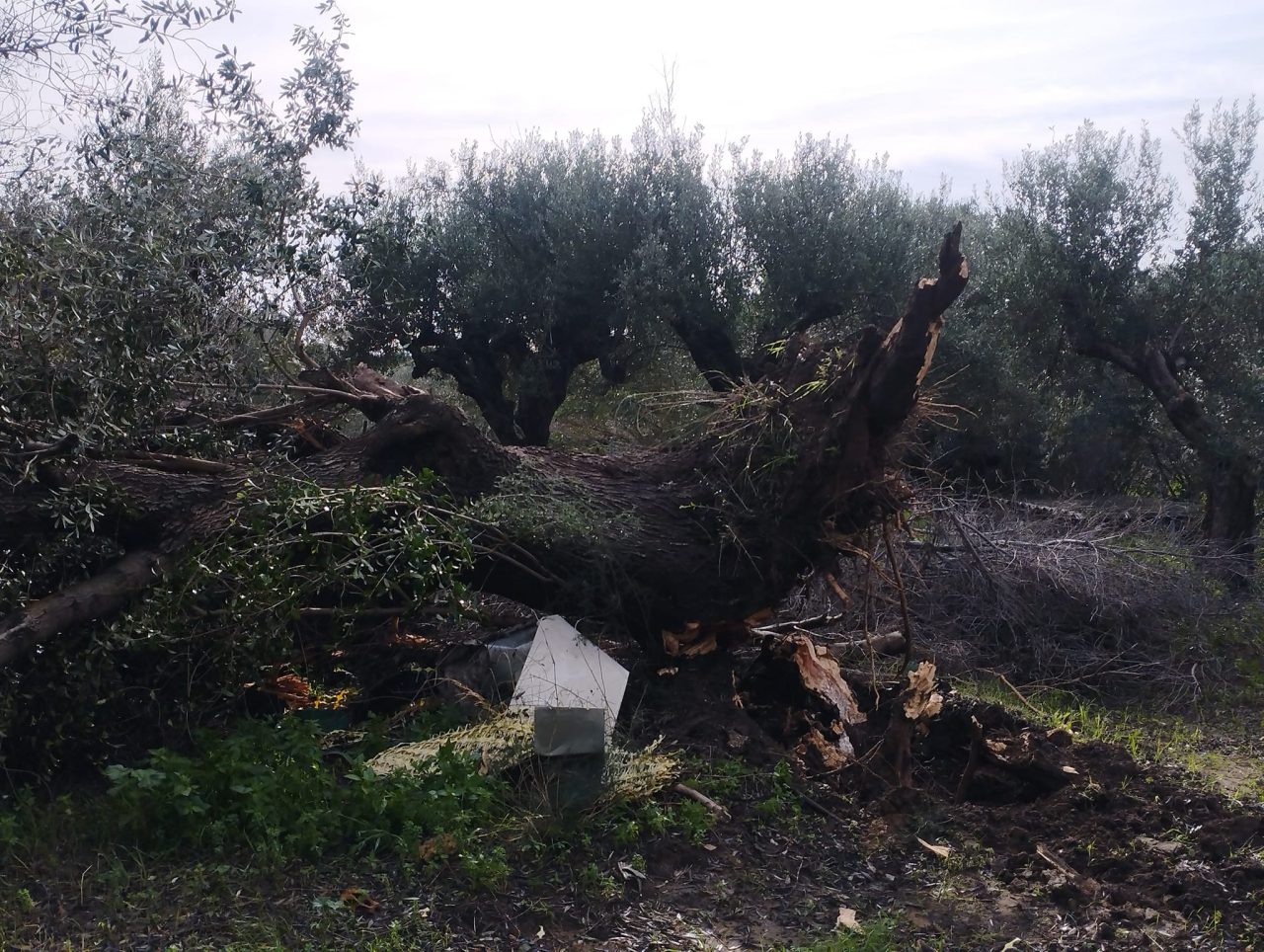 Καταστροφές άφησε πίσω του ο ανεμοστρόβιλος που έπληξε τις περιοχές του Αγίου Ηλία και της Μυρτιάς τα ξημερώματα της Κυριακής (15/12) στην Ηλεία.