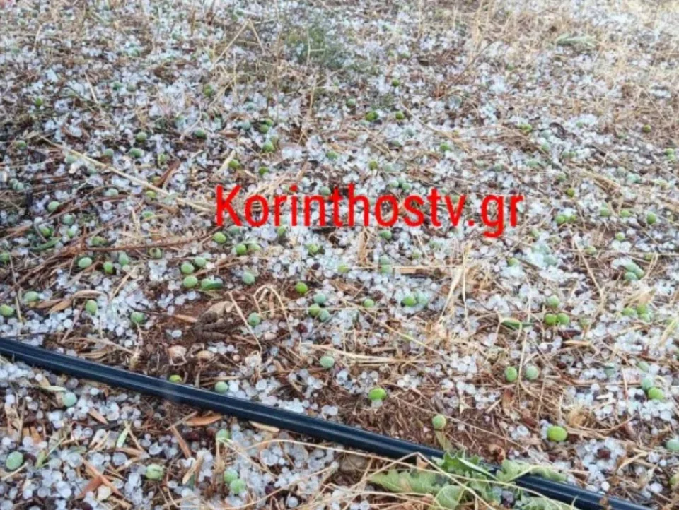 Ισχυρή χαλαζόπτωση στην Κλένια Κορινθίας – Μεγάλες ζημιές στα ελαιόδεντρα (φώτο)