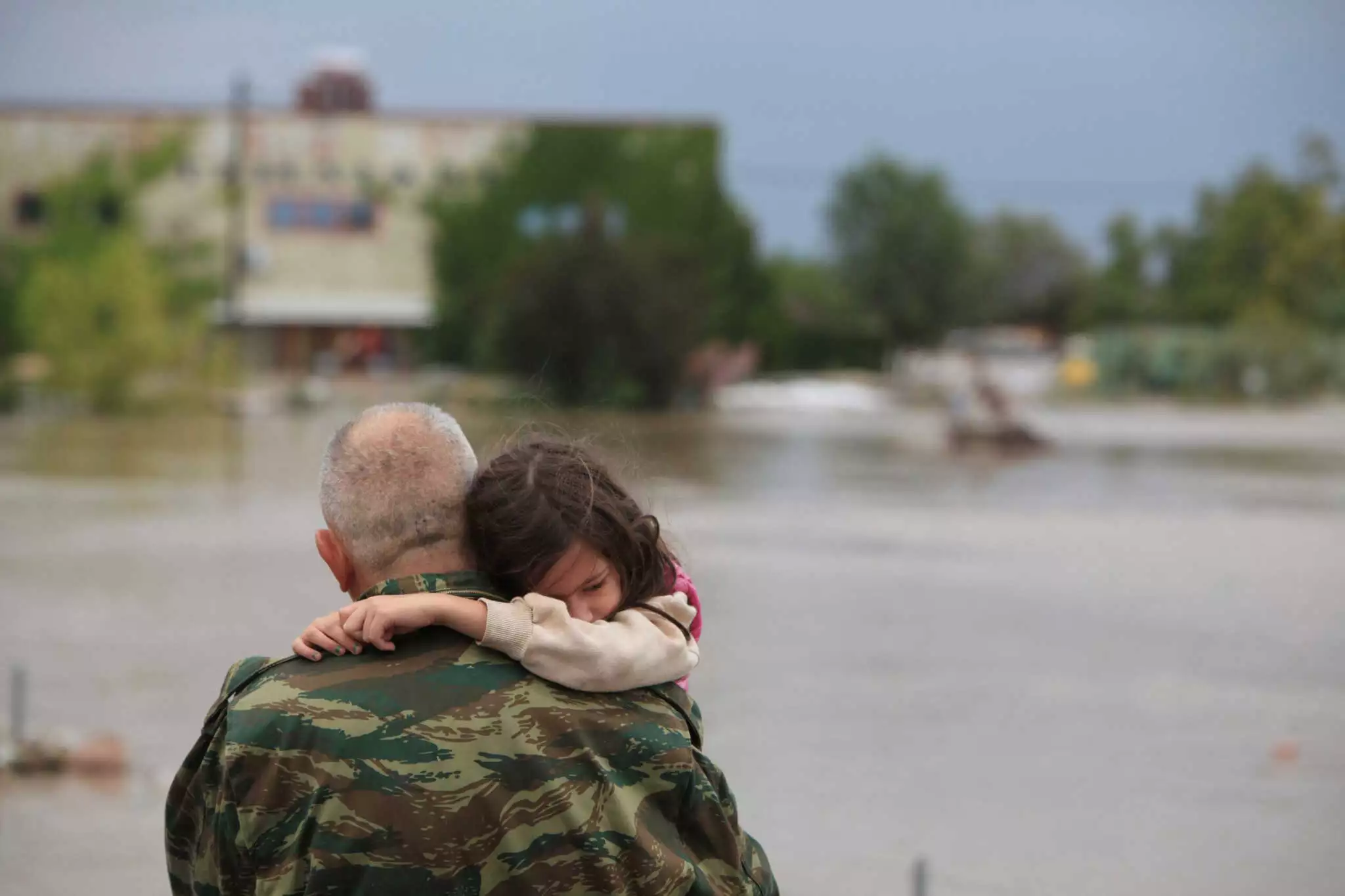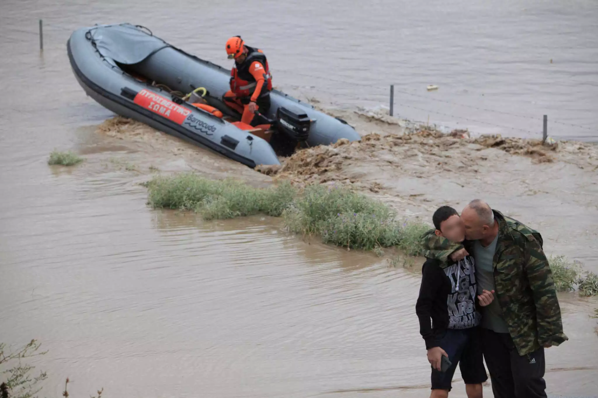 Ο φωτογραφικός φακός αποτύπωσε τη δραματική διάσωση μιας οικογένειας μέσα από ένα πλημμυρισμένο σπίτι στη Λάρισα μετά το πέρασμα της κακοκαιρίας Daniel.