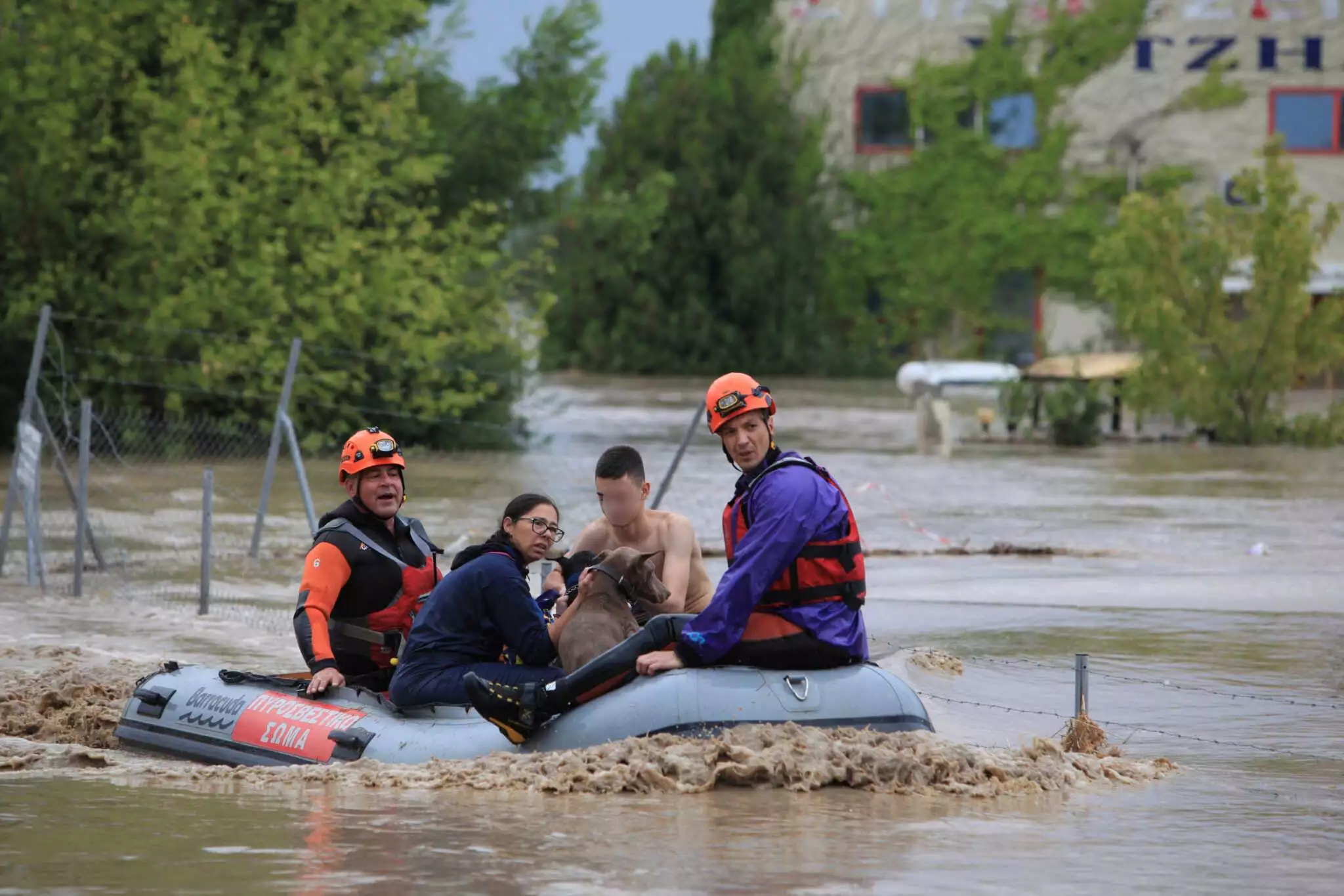 Στις φωτογραφίες φαίνεται δρόμος της Λάρισας να έχει μετατραπεί σε ποτάμι, ενώ μια οικογένεια βρέθηκε εγκλωβισμένη μέσα σε σπίτι που πλημμύρισε από τις καταρρακτώδεις βροχές της κακοκαιρίας Daniel.