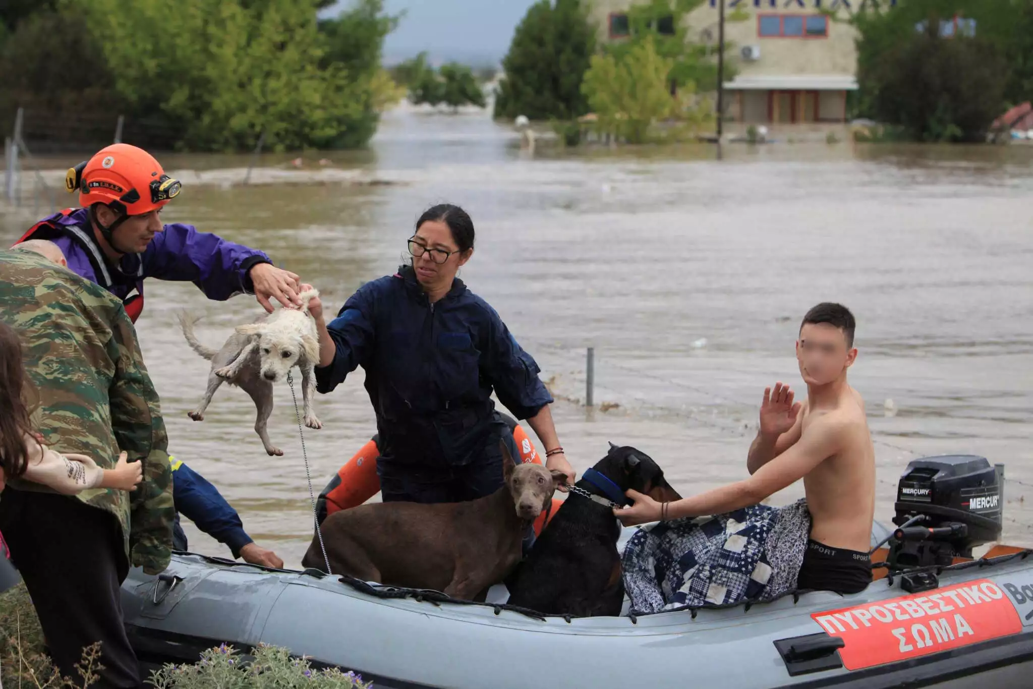 Μάλιστα, οι διασώστες κατάφεραν και έσωσαν μια οικογένεια μαζί με τα σκυλάκια της.