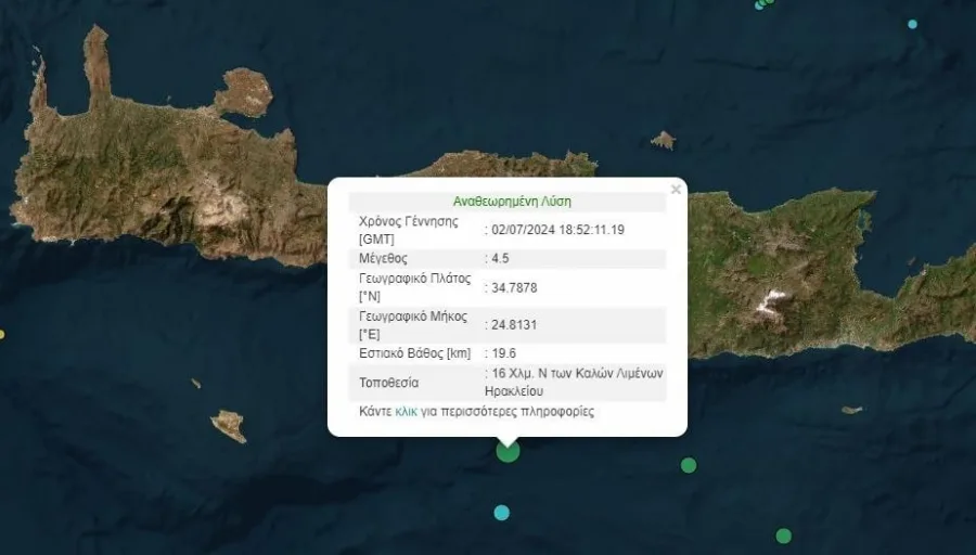 Το επίκεντρο εντοπίζεται 10 Χλμ. ΝΑ της Μιαμούς Ηρακλείου