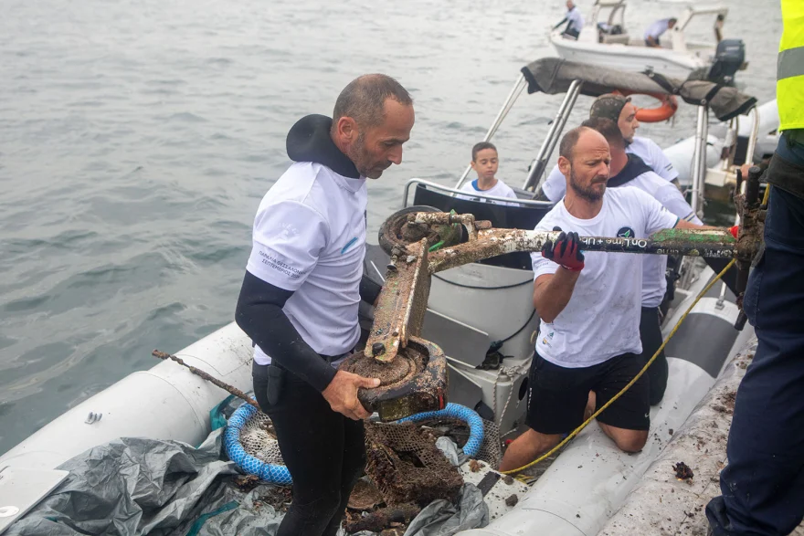 Μάλιστα προς το τέλος του καθαρισμού, εντοπίστηκε και ανασύρθηκε από τον βυθό του Θερμαϊκού και ένα μηχανάκι!