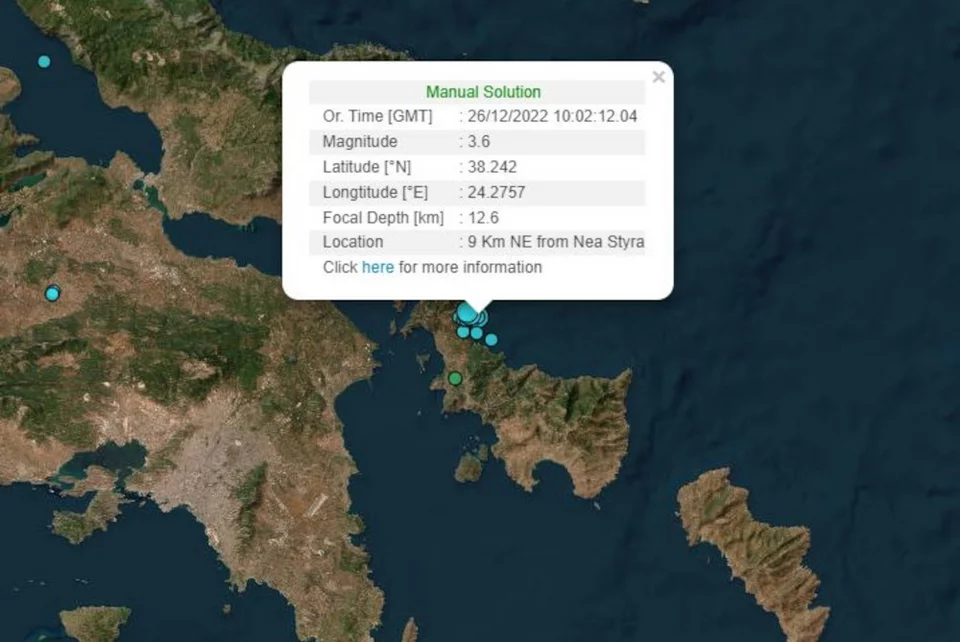 Νέος σεισμός 3,6 Ρίχτερ σημειώθηκε το μεσημέρι της Δευτέρας (26/12) στην Εύβοια.
