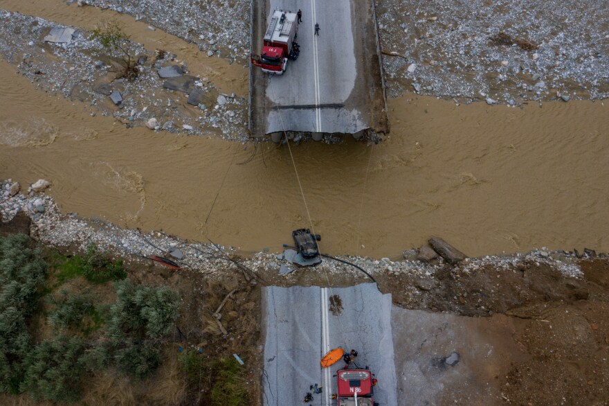 Εξάλλου, στην περιοχή του Δομοκού, την τελευταία στιγμή σώθηκαν δύο πυροσβέστες που εγκατέλειψαν το πυροσβεστικό τους όχημα λίγα δευτερόλεπτα πριν αυτό παρασυρθεί από έναν ορμητικό χείμαρρο.