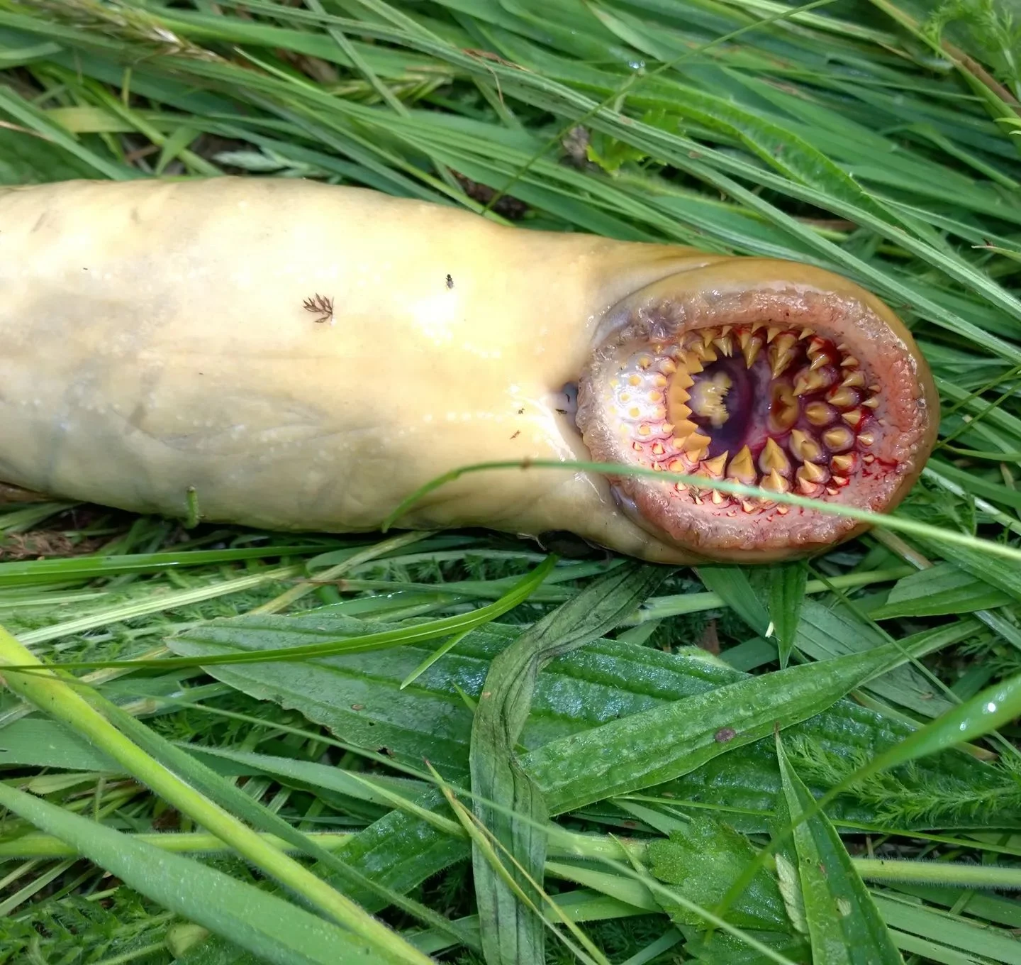 Αυτό ήταν περίπου 2 πόδια σε μήκος και ζύγιζε περίπου ένα κιλό. Μετά την ωοτοκία τον Ιούνιο πεθαίνουν όλα. Έχω δει πολλά από αυτά όλα αυτά τα χρόνια και το μόνο θηλαστικό που τα τρώει είναι οι ενυδρίδες. Αυτά τα αρχαία είδη ψαριών χωρίς γνάθο είναι σημάδι ενός υγιούς οικοσυστήματος».