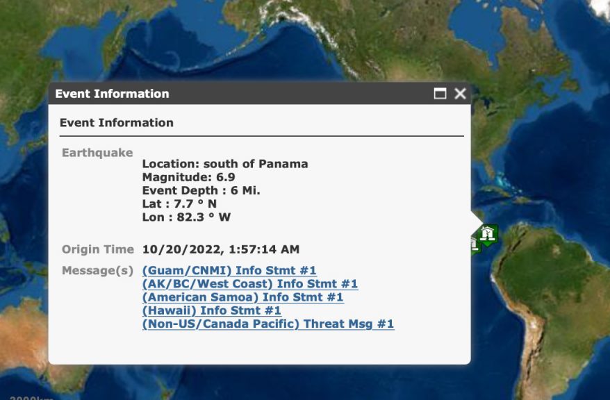 Σεισμός 6,8 ρίχτερ σημειώθηκε στον Παναμά, στα νότια της χώρας, όπως γνωστοποίησε το Ευρωπαϊκό Μεσογειακό Σεισμολογικό Κέντρο (EMSC).