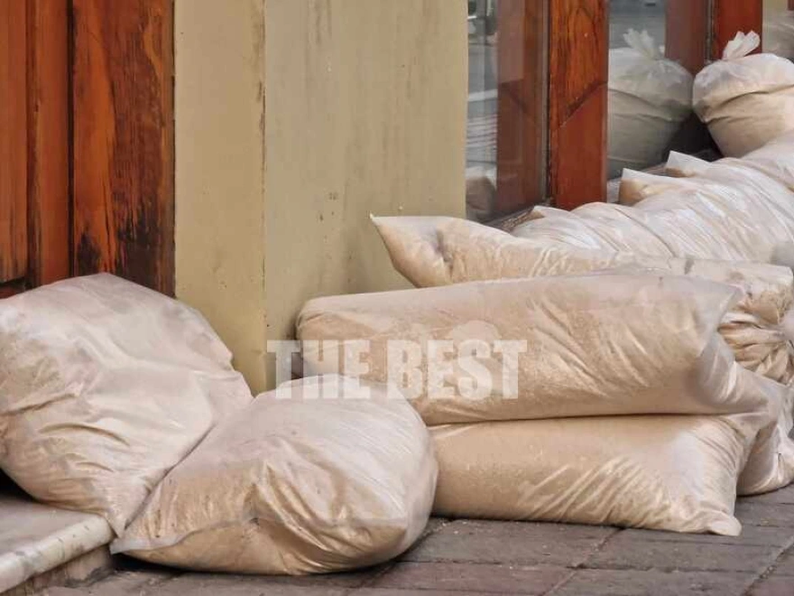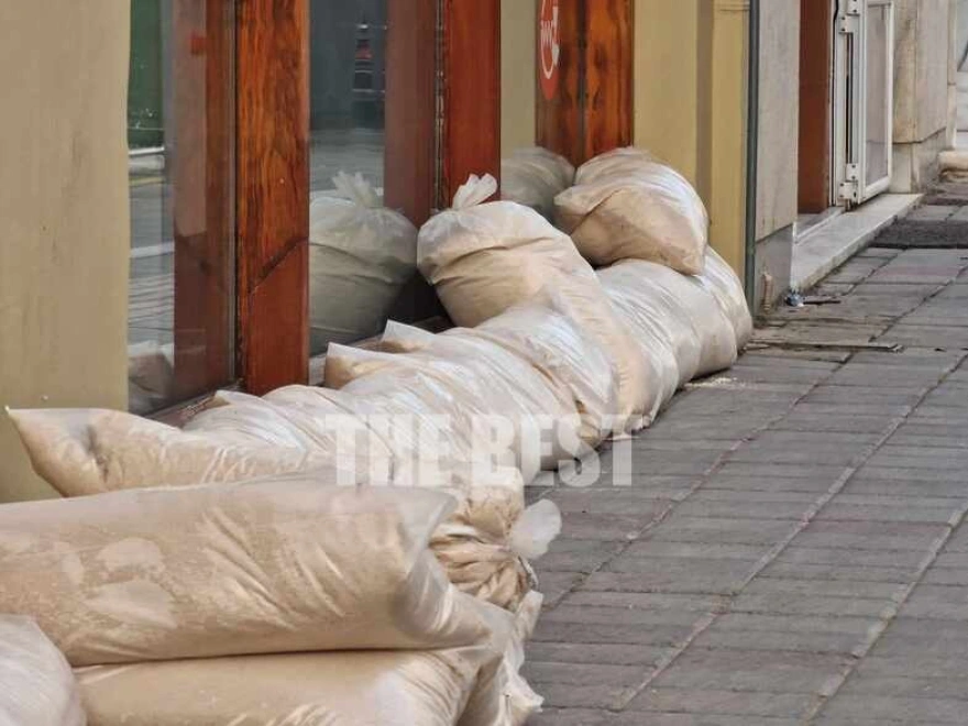 Ήδη από χθες, μαγαζάτορες τοποθέτησαν τσουβάλια με άμμο έξω από τα καταστήματά τους, ευελπιστώντας ότι θα λειτουργήσουν ως ανάχωμα στην επέλαση του νερού.