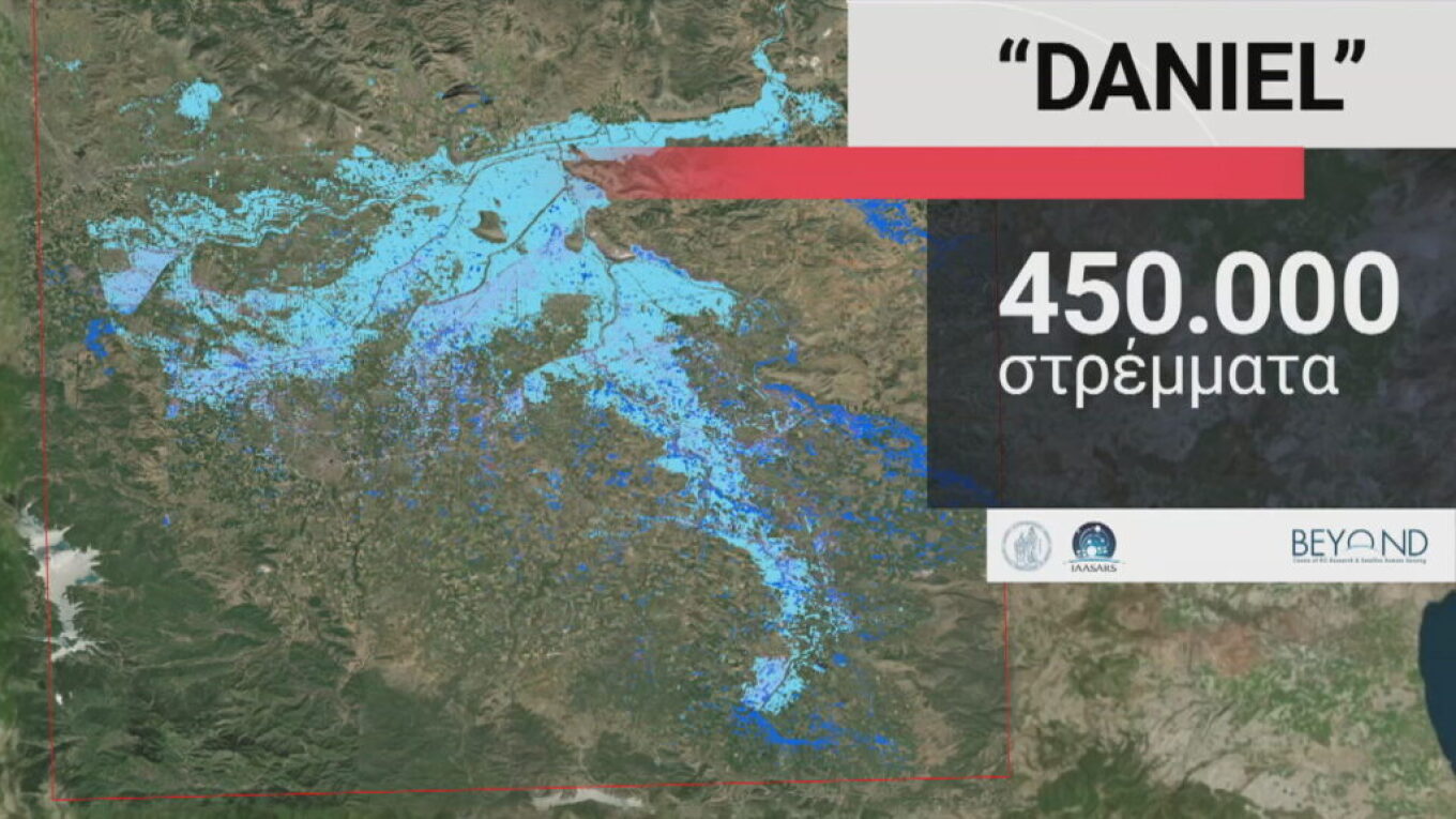 Ο χάρτης της Θεσσαλίας άλλαξε μετά την επέλαση της κακοκαιρίας Ντάνιελ που αποδείχτηκε τρεις φορές πιο καταστροφική από τον «Ιανό», ενώ βάσει των δορυφορικών δεδομένων, το μεγαλύτερο τμήμα των νομών Τρικάλων και Καρδίτσας έχει κατακλυστεί από τα νερά χειμάρρων και παραποτάμων του Πηνειού.